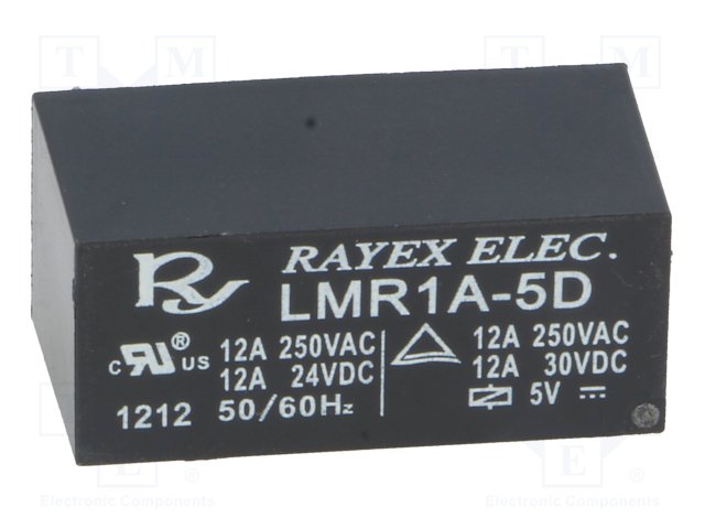 Реле: электромагнитное; SPDT; Uобмотки: 5ВDC; 12A/250ВAC; 530мВт |