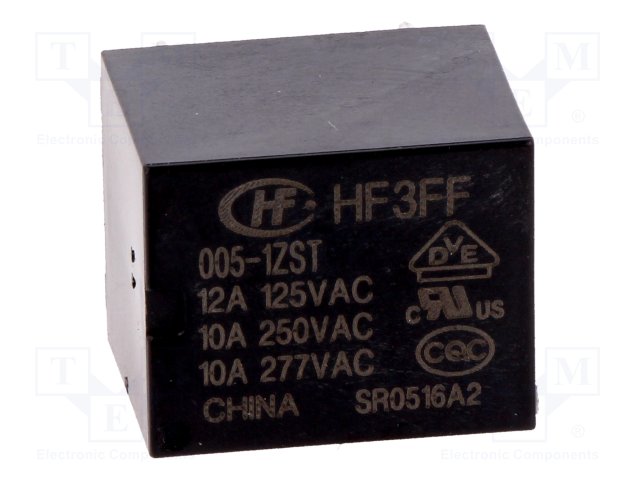 Реле: электромагнитное; SPST-NO; Uобмотки: 5ВDC; 10A/277ВAC; 10А |