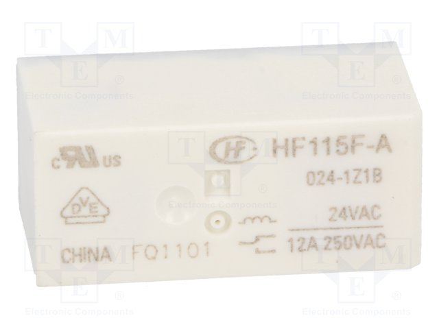 Реле: электромагнитное; SPDT; Uобмотки: 24ВAC; 12A/250ВAC; 12А |