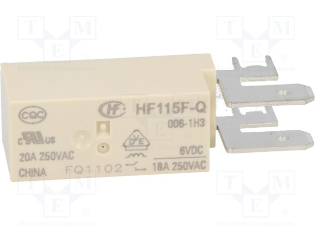 Реле: электромагнитное; SPST-NO; Uобмотки: 6ВDC; 20A/250ВAC; 20А |