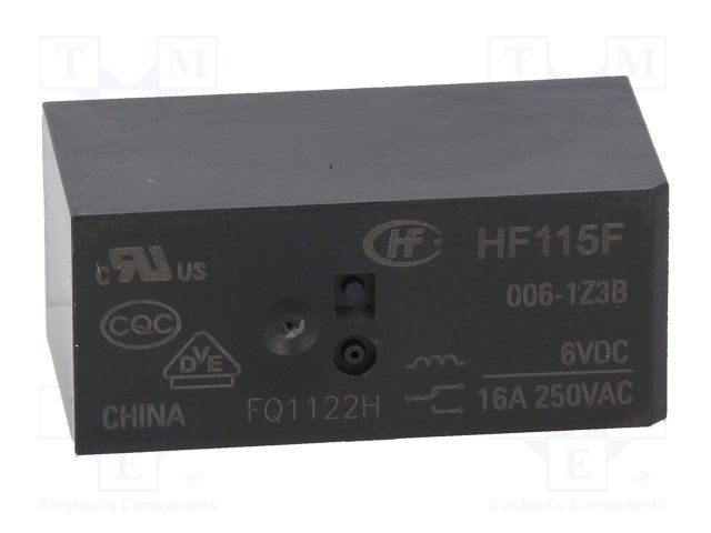 Реле: электромагнитное; SPDT; Uобмотки: 6ВDC; 16A/250ВAC; 16А |