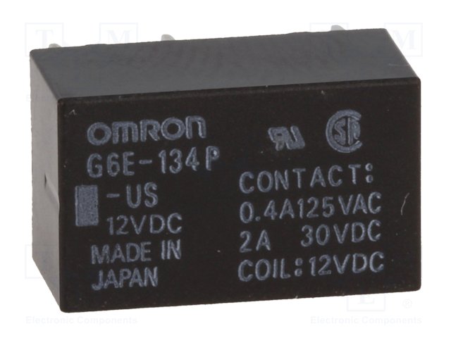 Реле: электромагнитное; DPDT; Uобмотки: 12ВDC; 0,3A/125ВAC; 100мВт |