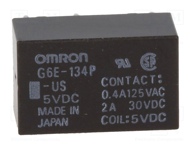 Реле: электромагнитное; DPDT; Uобмотки: 5ВDC; 0,3A/125ВAC; 100мВт |