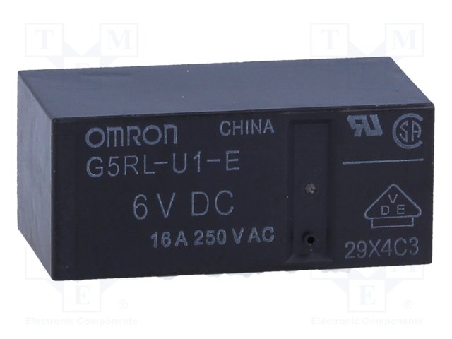 Реле: электромагнитное; SPDT; Uобмотки: 6ВDC; 16A/250ВAC; 600мВт |