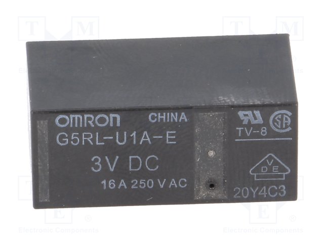 Реле: электромагнитное; SPDT; Uобмотки: 3ВDC; 16A/250ВAC; 600мВт |