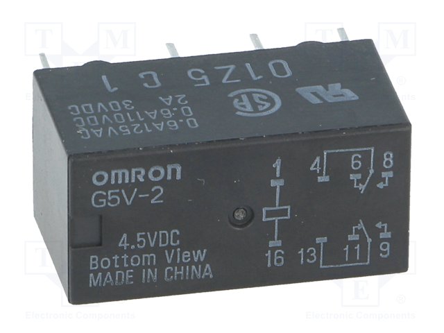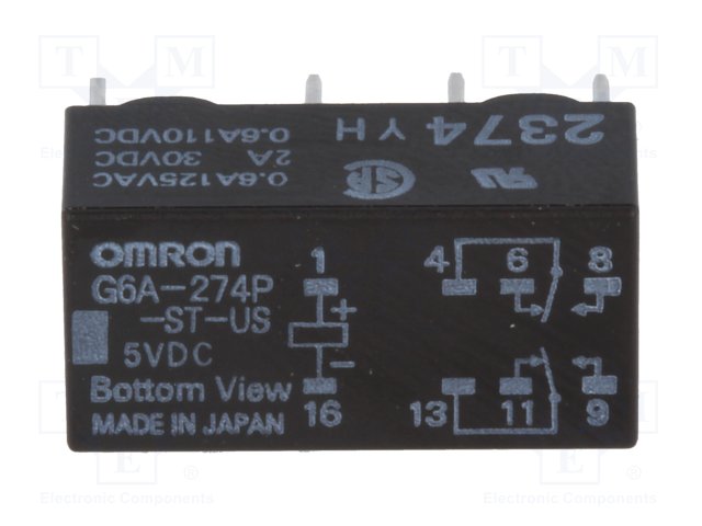 Реле: электромагнитное; DPDT; Uобмотки: 5ВDC; 0,3A/125ВAC; Шаг: 5мм |