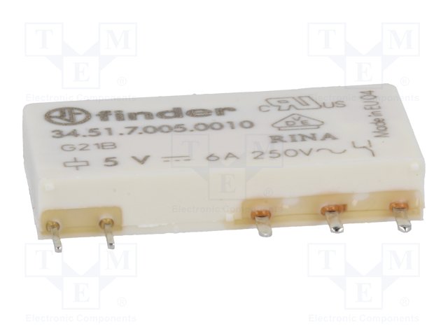 Реле: электромагнитное; SPDT; Uобмотки: 5ВDC; 6A/250ВAC; 6A/30ВDC |