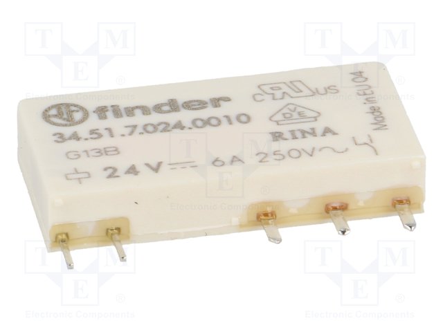 Реле: электромагнитное; SPDT; Uобмотки: 24ВDC; 6A/250ВAC; 6A/30ВDC |