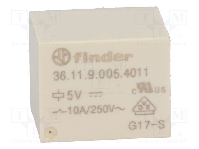 Реле: электромагнитное; SPDT; Uобмотки: 5ВDC; 10A/250ВAC; 38Ом |