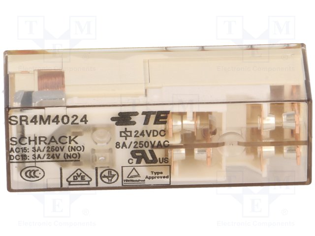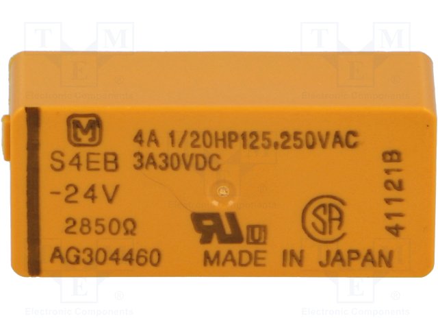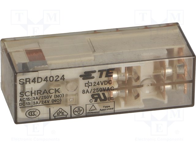 Реле: электромагнитное; 4PST; Uобмотки: 24ВDC; 4A/250ВAC; 3A/30ВDC |