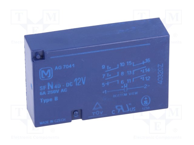 Реле: электромагнитное; SPST-NO x4 + SPST-NC x2; Uобмотки: 12ВDC |