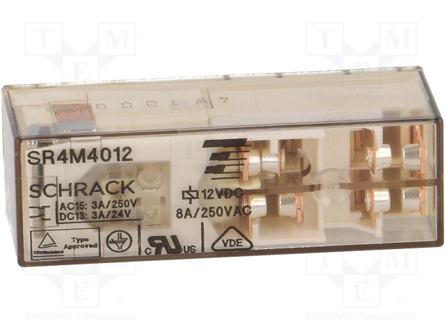 Реле: электромагнитное; 4PST; Uобмотки: 12ВDC; 4A/250ВAC; 3A/30ВDC |