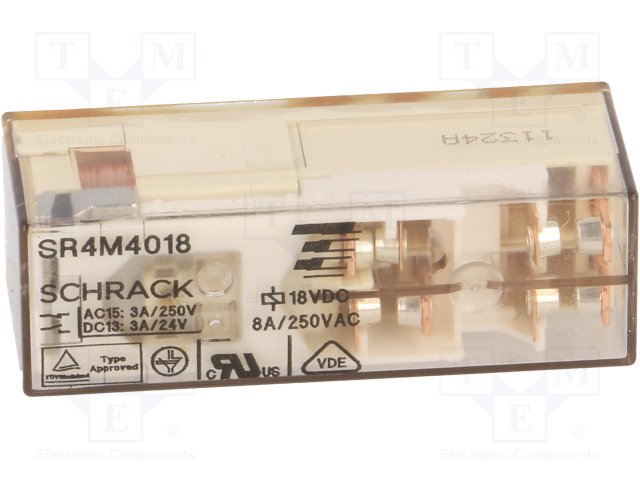 Реле: электромагнитное; SPST-NO x2 + SPST-NC x2; Uобмотки: 18ВDC |