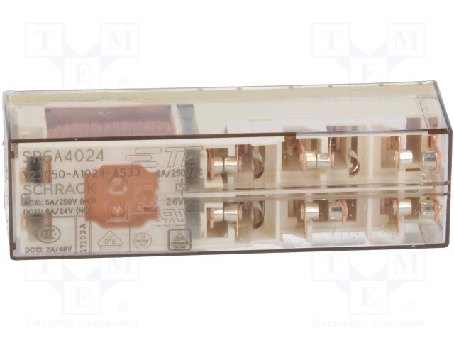 Реле: электромагнитное; NC x3 + NO x3; Uобмотки: 24ВDC; 8А; 480Ом |