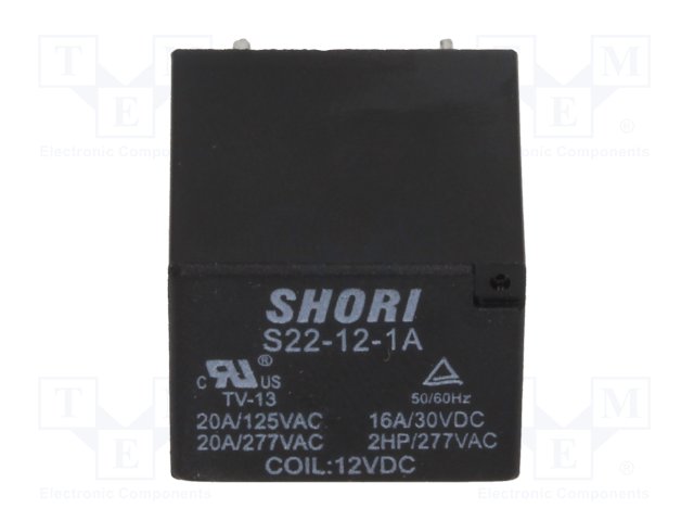 Реле: электромагнитное; SPST-NO; Uобмотки: 12ВDC; 17A/277ВAC; 13г |