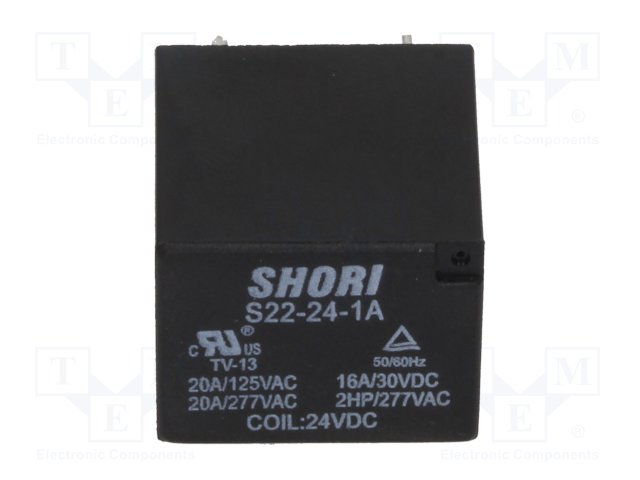 Реле: электромагнитное; SPST-NO; Uобмотки: 24ВDC; 17A/277ВAC; 13г |