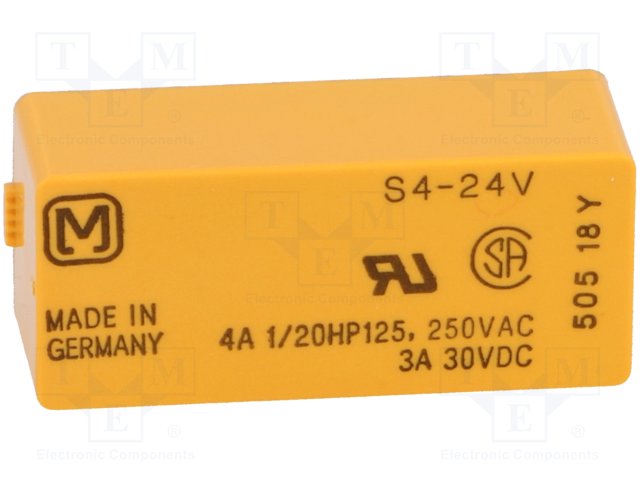 Реле: электромагнитное; Uобмотки: 24ВDC; 4А; макс.250ВAC |