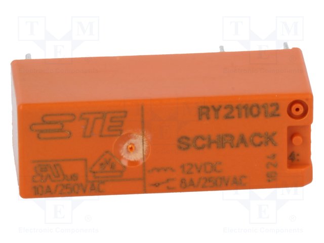 Реле: электромагнитное; SPDT; Uобмотки: 12ВDC; 8A/250ВAC; 8A/30ВDC |