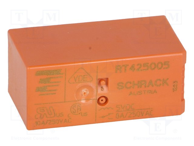 Реле: электромагнитное; DPDT; Uобмотки: 5ВDC; 8A/250ВAC; 8A/30ВDC |