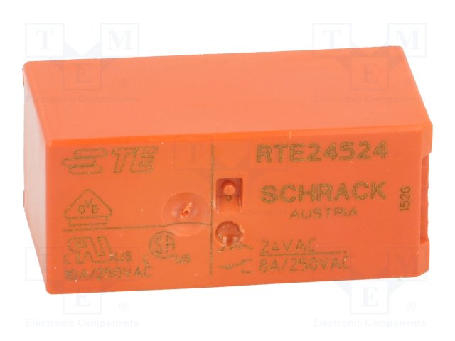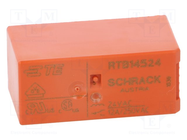 Реле: электромагнитное; SPDT; Uобмотки: 24ВAC; 12A/250ВAC; 350Ом |