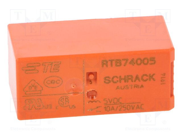 Реле: электромагнитное; SPST-NO; Uобмотки: 5ВDC; 16A/250ВAC; 38Ом |