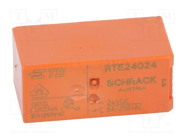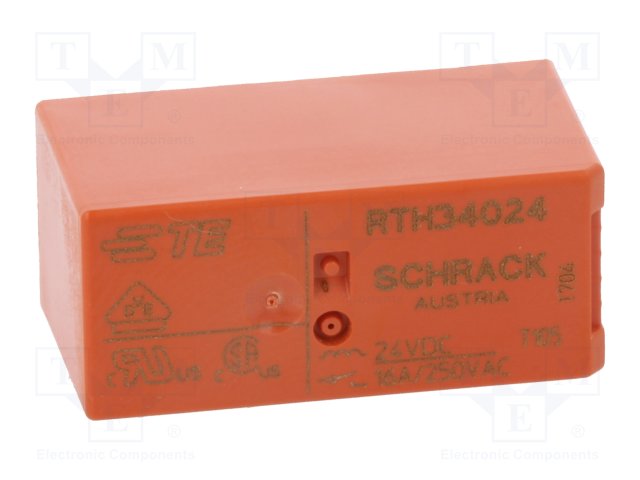 Реле: электромагнитное; SPDT; Uобмотки: 24ВDC; 16A/250ВAC; 1,44кОм |