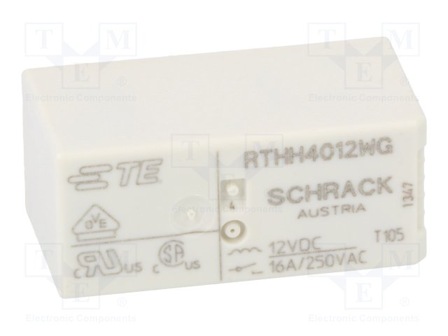 Реле: электромагнитное; SPST-NO; Uобмотки: 12ВDC; 16A/250ВAC; 16А |