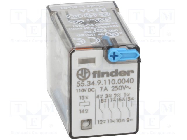 Реле: электромагнитное; 4PDT; Uобмотки: 110ВDC; 7A/250ВAC; 12,5кОм |