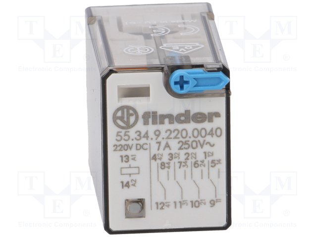 Реле: электромагнитное; 4PDT; Uобмотки: 220ВDC; 7A/250ВAC; 54кОм |