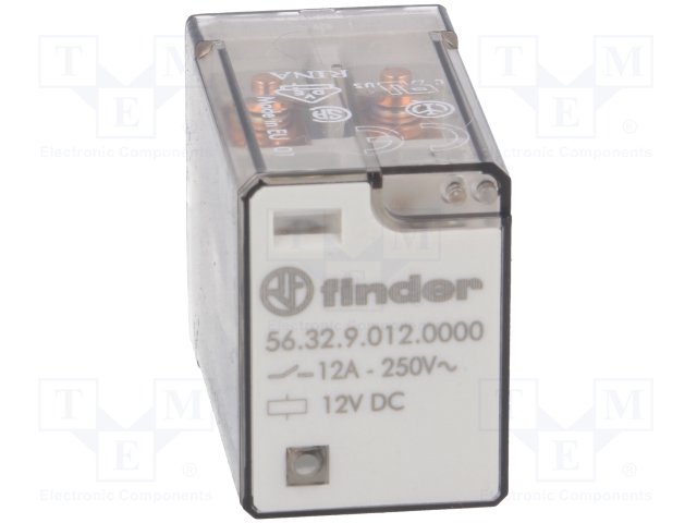 Реле: электромагнитное; DPDT; Uобмотки: 12ВDC; 12A/250ВAC; 123Ом |
