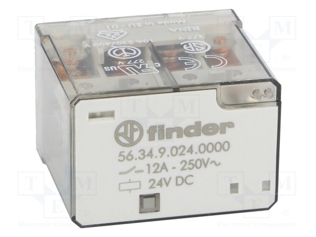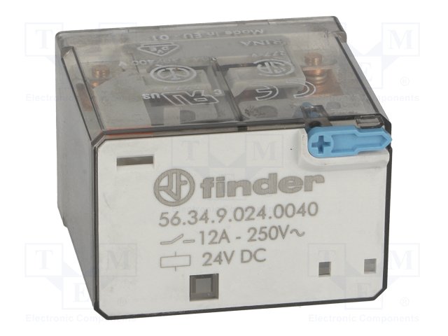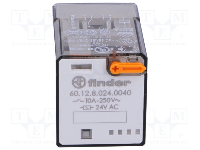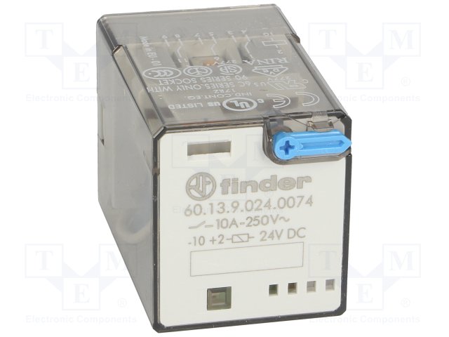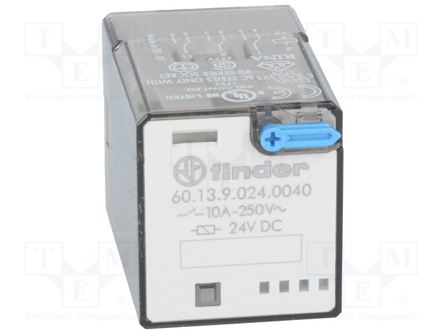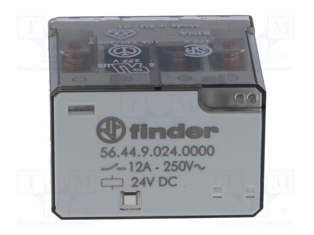 Реле: электромагнитное; 4PDT; Uобмотки: 24ВDC; 12A/250ВAC; 490Ом |
