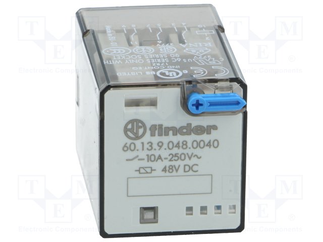 Реле: электромагнитное; 4PDT; Uобмотки: 48ВDC; 12A/250ВAC; 1800Ом |