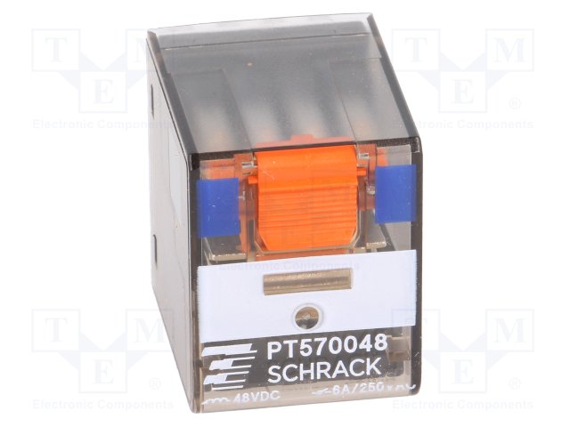 Реле: электромагнитное; 4PDT; Uобмотки: 48ВDC; 6A/250ВAC; 6A/30ВDC |