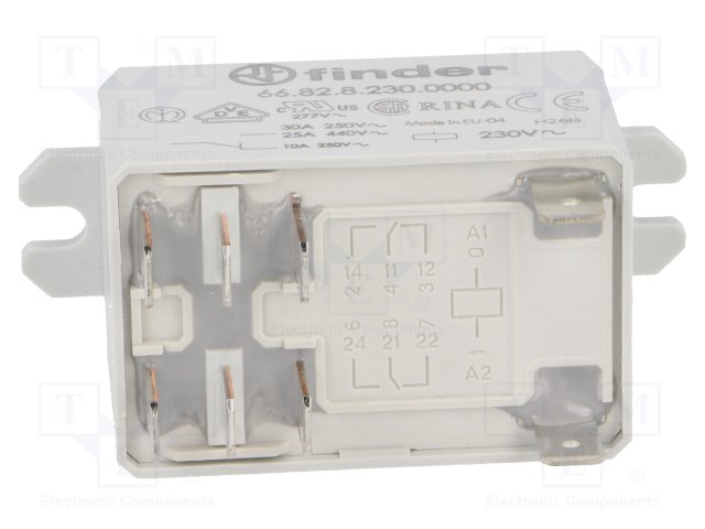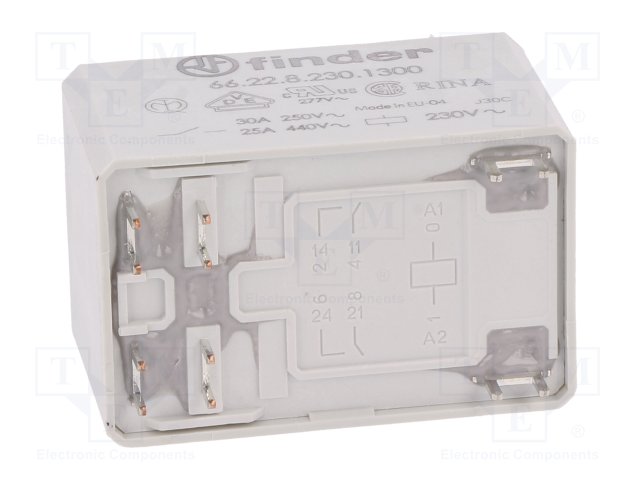 Реле: электромагнитное; DPDT; Uобмотки: 230ВAC; Iконтакт.макс: 30А