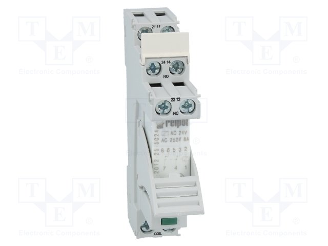 Реле: интерфейсное; DPDT; Uобмотки: 24ВAC; 8А; 8A/230ВAC; 8A/24ВDC |