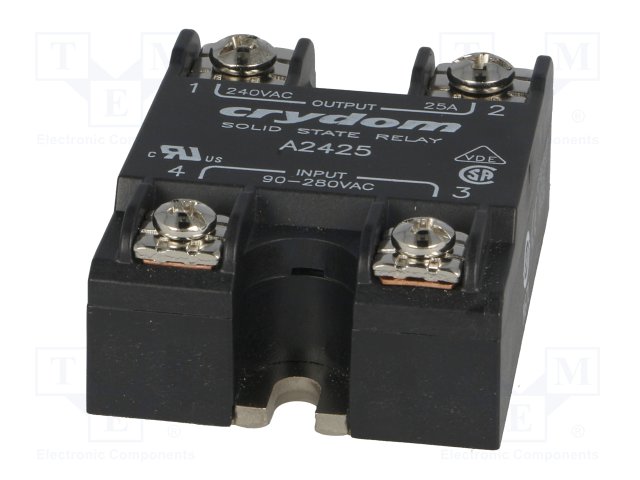 Реле: полупроводниковое; Uупр: 4÷32ВDC; Iупр: 20мА; 25А; 75÷250ВAC |