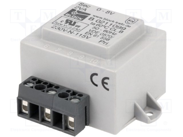 Трансформатор: сетевой; 2ВА; 115/230ВAC; 8В; Монтаж: DIN