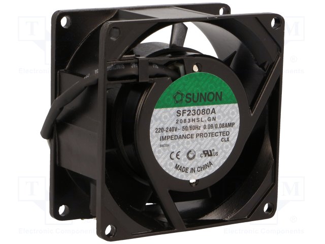Вентилятор: AC; осевой; 230ВAC; 80x80x38мм; 39(±7%)м3/ч; 31дБА |