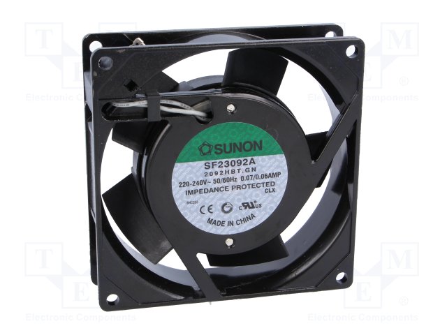 Вентилятор: AC; осевой; 230ВAC; 92x92x25мм; 51(±7%)м3/ч; 37дБА |