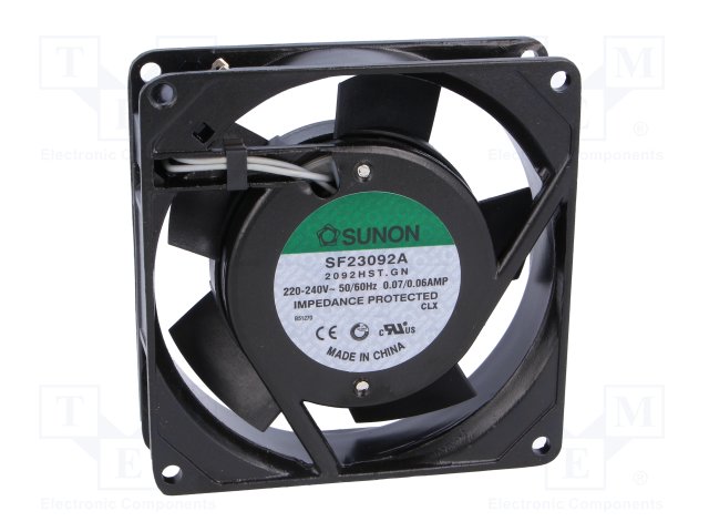 Вентилятор: AC; осевой; 230ВAC; 92x92x25мм; 87(±7%)м3/ч; 31,6дБА |