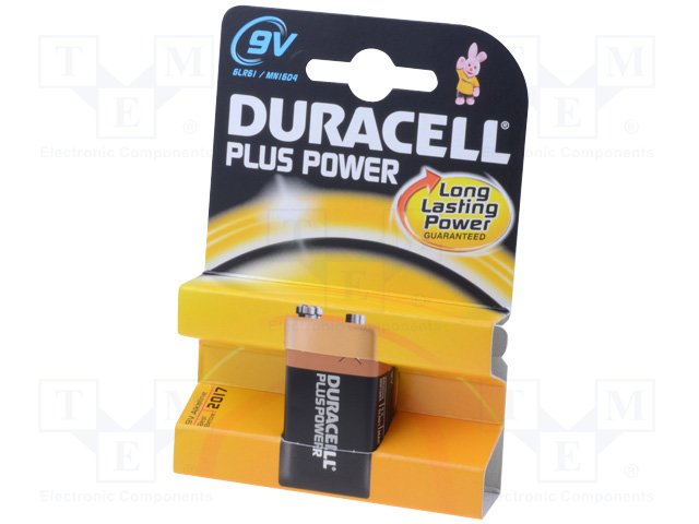 Battery: alkaline; 9V; 6F22; PLUS; non-rechargeable