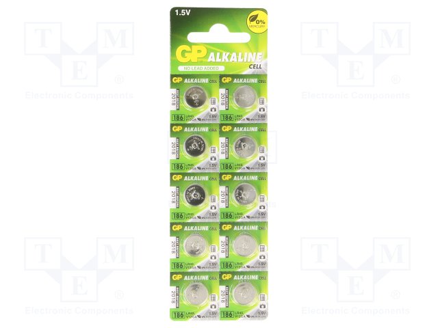 Батарея: щелочная; 1,5В; LR43,R1142,дисковая; Кол-во бат: 10