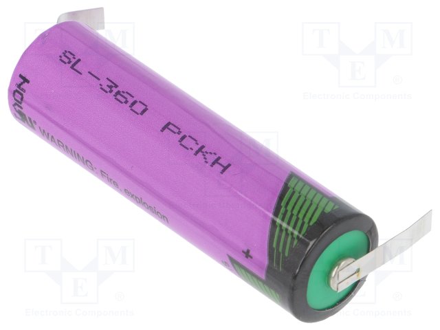 Батарея: литиевая (LTC); 3,6В; AA; плоские, под пайку; 1800мАч
