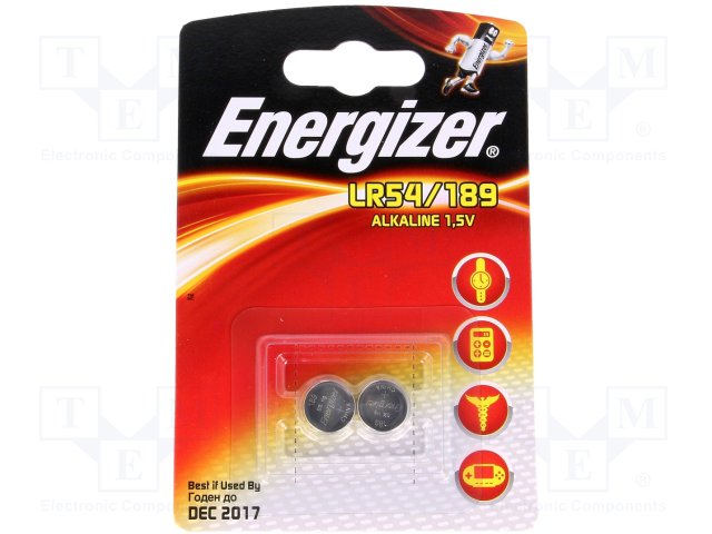 Батарея: щелочная; 1,5В; LR54,дисковая; Кол-во бат: 2; Ø11,6x3мм