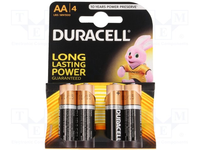 Battery: alkaline; 1.5V; AA; Base; Batt.no: 4; non-rechargeable