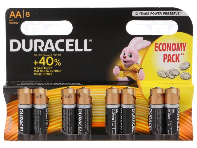 Battery: alkaline; 1.5V; AA; Base; Batt.no: 8; non-rechargeable