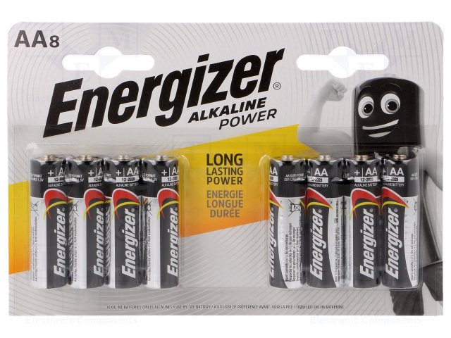 Battery: alkaline; 1.5V; AA; Batt.no: 8; non-rechargeable