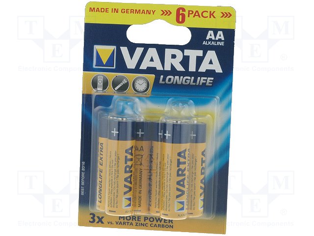 Батарея: щелочная; 1,5В; AA; LONGLIFE; Кол-во бат: 6