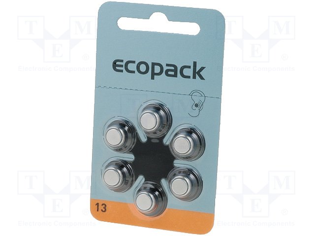 Батарея: цинк-воздушная (ZnO2); 1,4В; AC13,R754,дисковая; 270мАч