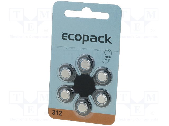 Батарея: цинк-воздушная (ZnO2); 1,4В; AC312,R36,дисковая; 150мАч